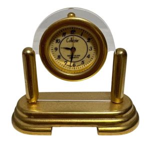 Vintage Collezio Night Glow Quartz Miniature Desk Clock With Gold-Tone Base & Acrylic Stand