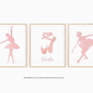 ballet shoes print, ballerina slippers watercolor, dance wall art printable, dancer themed room, big girls room decor, pink shoe print
