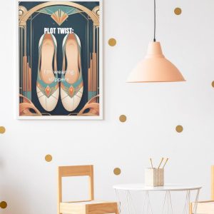 Art Deco Work From Home Office Decor | Plot Twist I’m Wearing Slippers | Framed Home Office Wall Art Print | Remote Work Humor Gift