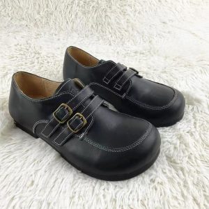 Black Genuine Leather Women’s Wide-Fit Shoes – Top Grain Cowhide Low-Top Slip-On, Forest Casual Spring/Summer