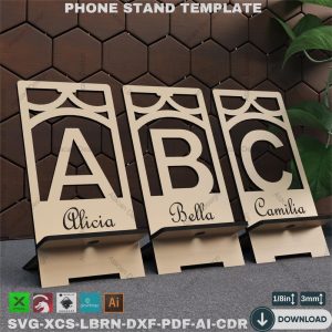 Laser Cut Phone Holder – 26 Letter Designs – Phone Stand SVG Files,Phone Stand Laser Cutting Files – Personalised Alphabet Designs – SVG 867