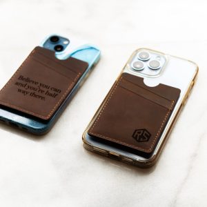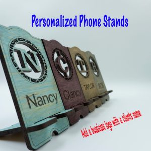 Personalized monogram wood cell phone stand- Custom with name and company logo