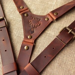 Rustic (Dark Cognac) Leather suspenders Personalized Personalized Gifts For Men Suspenders Wedding Suspenders Mens Braces For Grooms