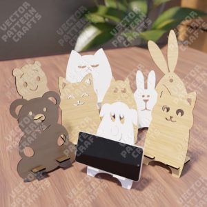 Wooden animal phone stand bundle svg laser cut file Glowforge desktop phone stand svg Phone holder dxf vector pattern Digital Download